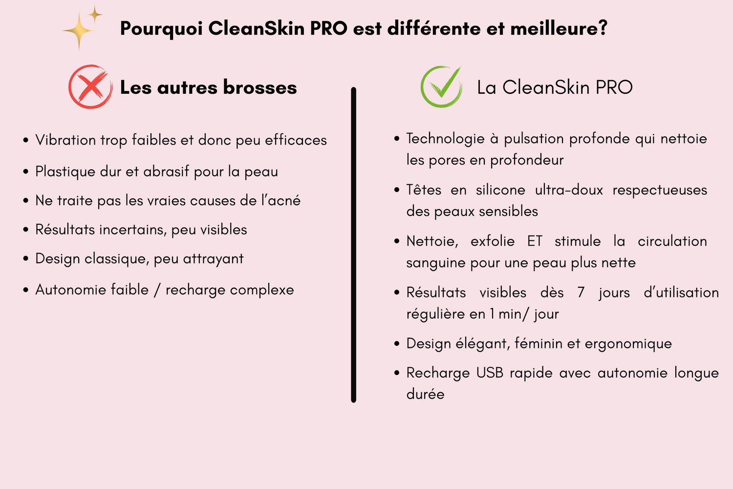 - "mes soins ne marchent pas" → CleanSkin Pro te permet une véritable pénétration de tes soins
